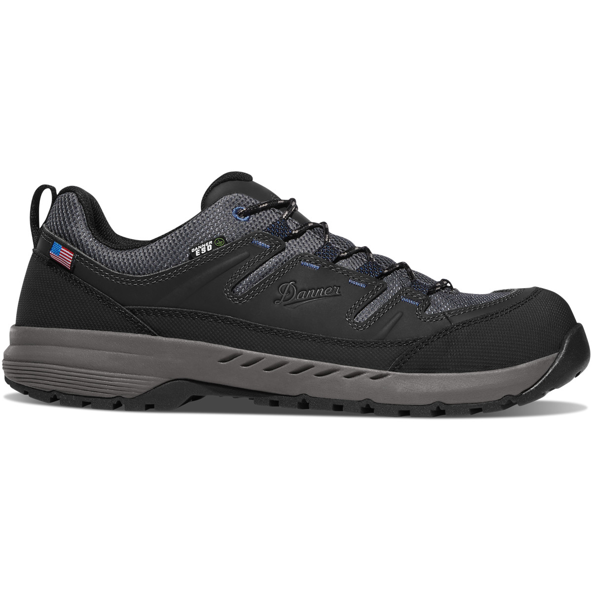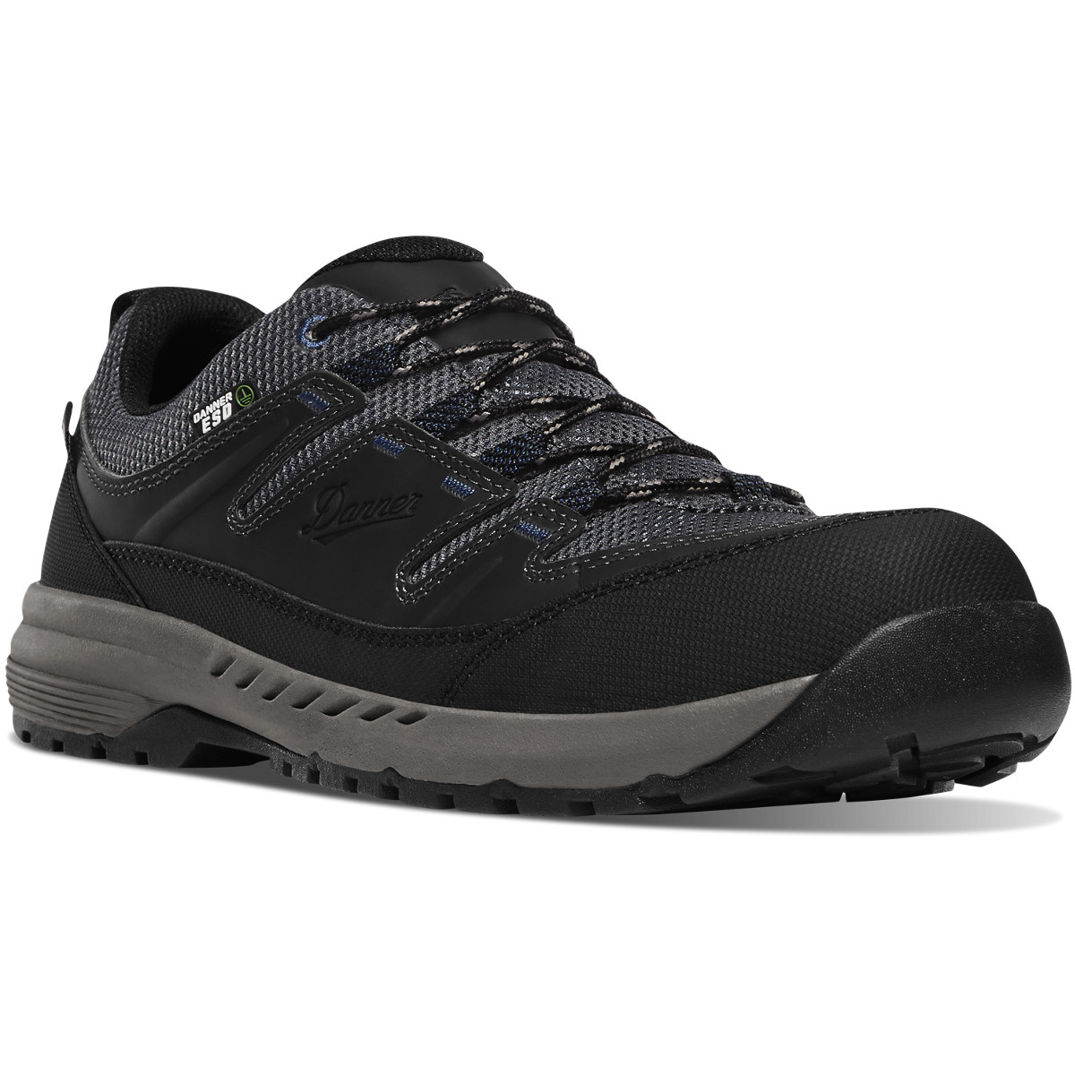 Full-Grain Leather & Textile UpperFor a highly abrasion resistant upper, we combine our premium full-grain leather with durable water repellent (DWR) treated nylon panels.Mesh LiningLightweight and breathable for total foot comfort.Non-Metallic Hardware100% metal free hardware.Composite Toe (NMT)Our composite toe is non-metallic, does not transmit heat or cold, nor will it set off metal detectors. As expected, it meets or exceeds ASTM F2413-11 M I/75 C/75 SD standards.ESD (Electrostatic Discharge) FootwearStatic dissipative footwear is designed to reduce the accumulation of excess static electricity by conducting body charge to the ground while maintaining a high enough level of electrical resistance.Removable OrthoLite FootbedThree layers of varying density are combined for maximum cushioning and support. The entire footbed is made of open-cell polyurethane for better heat dissipation and air circulation.EVA MidsoleKnown for its lightweight properties, EVA is a special polymer that provides excellent cushioning.Danner Black Belt OutsoleOil-and-slip-resistant rubber provides superior traction and durability.How It FitsBased on one of our most popular lasts, the DPDX2 has a low profile for everyday wear. Whether on the job or on the trail, this last was built to offer enough room for comfort while maintaining a sleek profile across all styles.