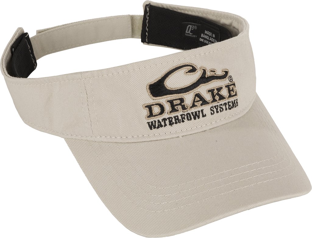 Low-profile visor with Drake Waterfowl Systems embroidery on the front. Velcro back closure. Solid colors are 100% cotton. Camo colors are 100% polyester. One size fits most.