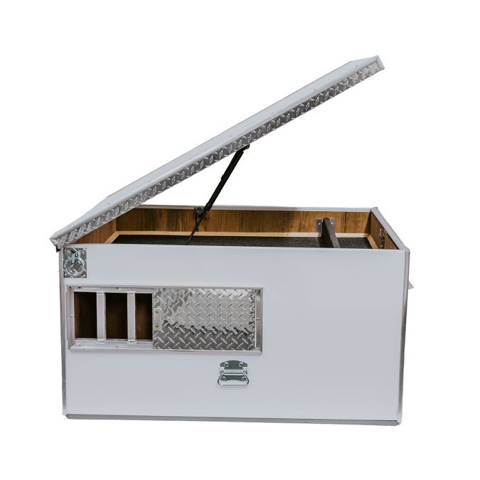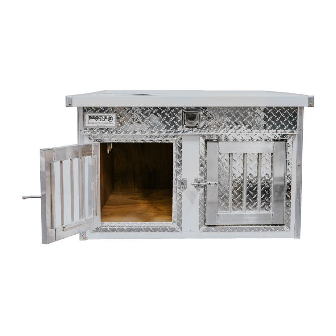 - Double Wall Construction – Keep your dogs cool in the summer and warm in the winter, the double wall is made of an 0.030 gauge aluminum outer skin, 3 mm laun sheeting on the inside; sandwiched in between the layers is 3/4″ foam board insulation