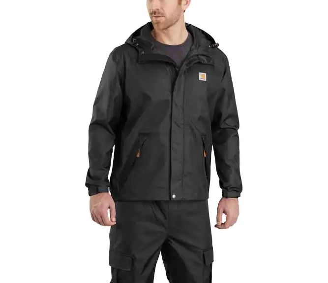 This men’s waterproof jacket is the difference between being uncomfortable in the rain and working right through it all. It’s made of lightweight, breathable material that provides a seam-sealed barrier against the elements. There are three pockets on the outside as well as drop-in pockets on the inside.